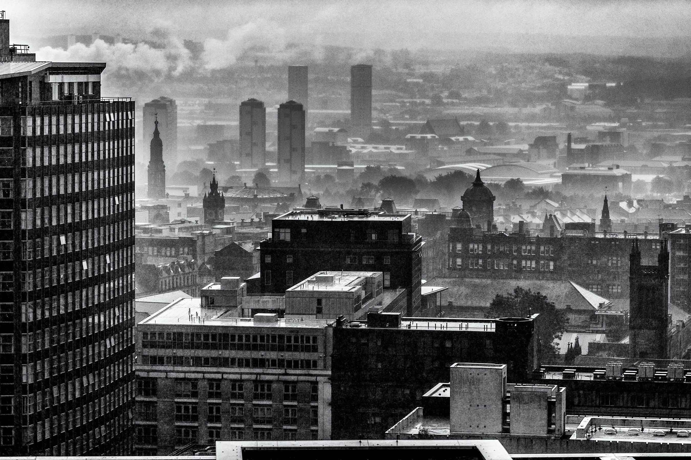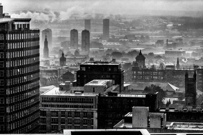 I am always looking out for a good cityscape of Glasgow. The city rarely disappoints. With all the heavy rain recently, I was looking out across the city and saw the low clouds and heavy dark lines. When I put the picture into black and white and increased the contrast, the way I would have done in the darkroom, the image really jumped out at me. The picture had a real 1940’s or 1950’s industrial feel about it. It was like the buildings were tall chimneys and factories with smoke all across the city.
