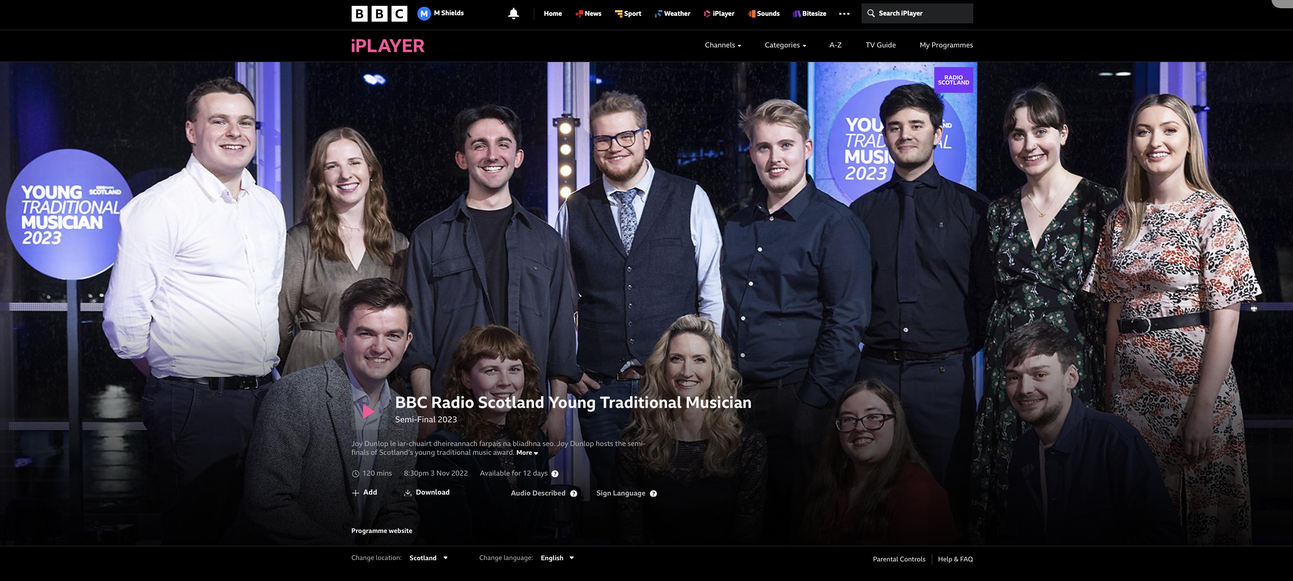 I had another lovely day with the BBC Young traditional musicians for the Young Trad awards. What a pleasure it is listening to them playing and singing. The program was written by Joy Dunlop, who is lovely. Its times like these I feel like giving away my guitar.