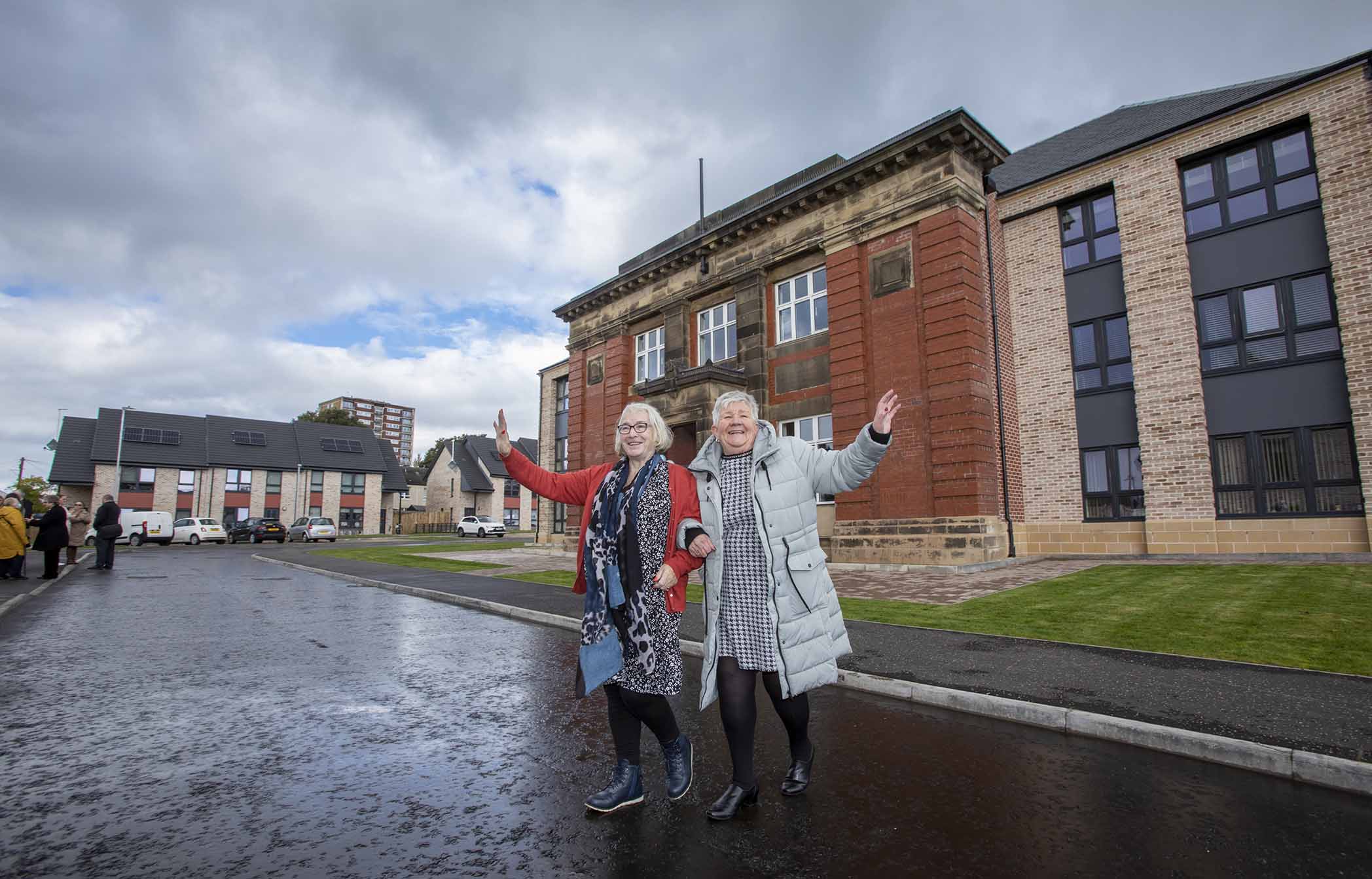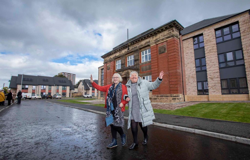 Mary Livingstone (76) and Anne Harley (68) were back on patrol to see the former Drumoyne Primary in Govan turned into new homes for rent by Linthouse Housing Association. They even helped the first minister crossing the road which created smiles all around.
