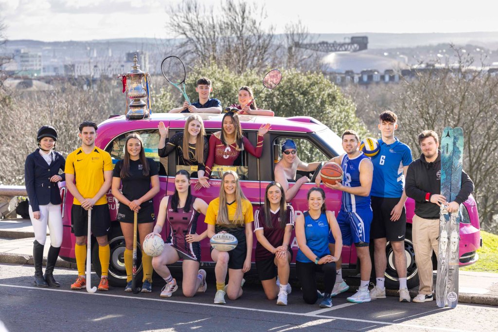 An event I cover every year since going freelance is the Glasgow Taxis Cup. The event has more than 700 student athletes from Glasgow Caledonian, Strathclyde, and Glasgow universities competing across 17 sports in the biggest one-day student inter-varsity competition across Scotland. The trophy is a stunning old piece of silver. We always think of different ideas for each year’s photocall. One year we even had a horse. As always the star is the Glasgow taxi. This year we had a bunch of students in their sport specific dress at the University of Glasgow with its amazing view across the city. It was lovely and sunny but cold in the shade. We did leave the heater on for the poor swimmer sitting in the cab in his trunks.