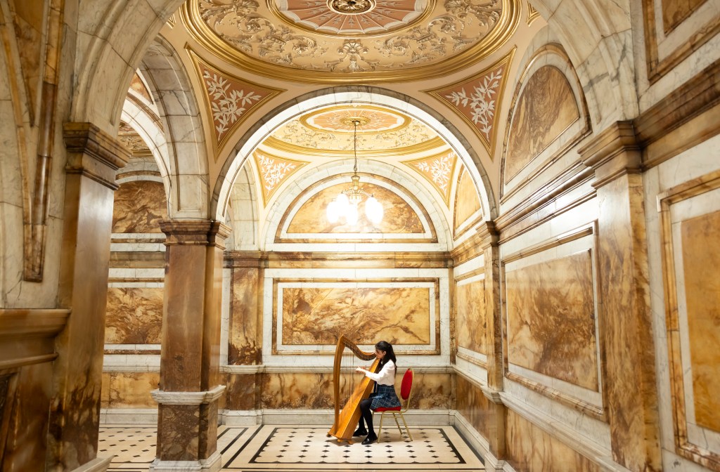 As I climbed the stairs I saw Maya, a talented s4 pupil playing the clarsach on the marble staircase as the guests were arriving. I knew that would be a perfect picture for The Herald newspaper and was delighted when a huge picture was used in the Saturday edition.