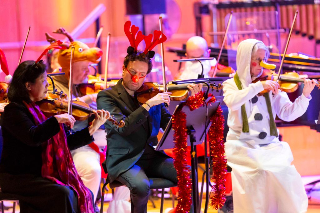 This is the best time of year with lots of festive assignments coming in. One of my favourites is the RSNO performing the music to The Snowman. This years reading was done by comic Josie Long. She was fab. Its such a Christmas story. Although it was mentioned that in Glasgow the words are changed to Irn Bru. The orchestra come in for the second half in all their Christmas outfits. This year my favourite was Associate Leader Shlomy Dobrinsky with his red nose and antlers on stage with Orchestra leader Maya Iwabuchi and Second Violin Anna Bunemann (with a banana on her snowman’s outfit.