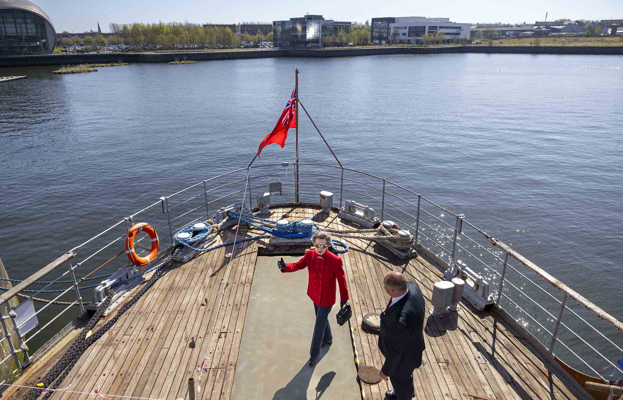 HRH Princess Anne was visiting the TS Queen Mary berthed beside the Glasgow Science Centre. We had a lovely day for the visit and the Princess looked great in her Team GB sunglasses. She was on great form chatting to the sponsors and volunteers. I loved this picture of HRH Princess Royal with Iain Sim, chairman of the Friends of TS Queen Mary on deck as part of her visit as Royal patron. We had fantastic coverage of the visit, it even made the front page of The Herald.