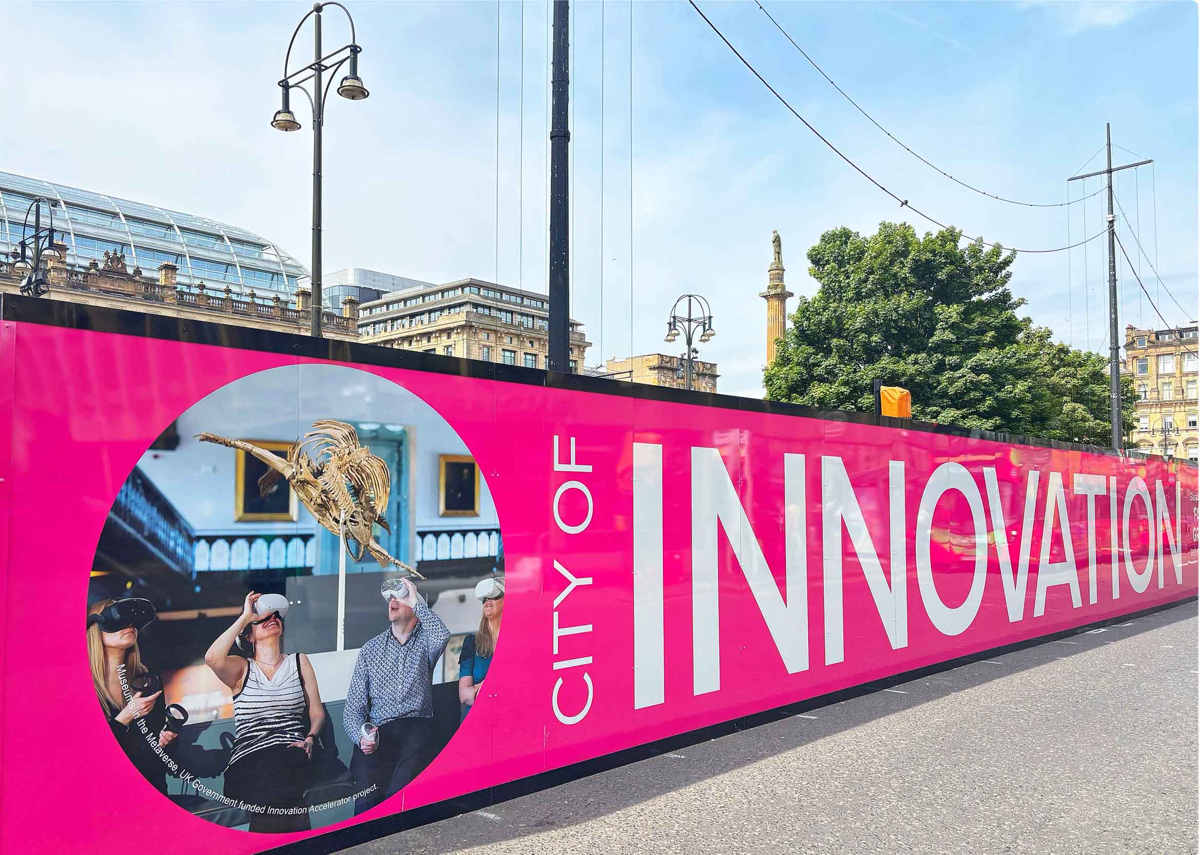 Sometimes you get a wee surprise walking through town I was walking past George Square, which is getting done up just now moving the statues and changing it all around. I was delighted to see my picture from the University of Glasgow’s Hungarian Museum. It was a picture I did for the Museums in the Metaverse project. It looked fab and was in pride of place outside the City Chambers.
