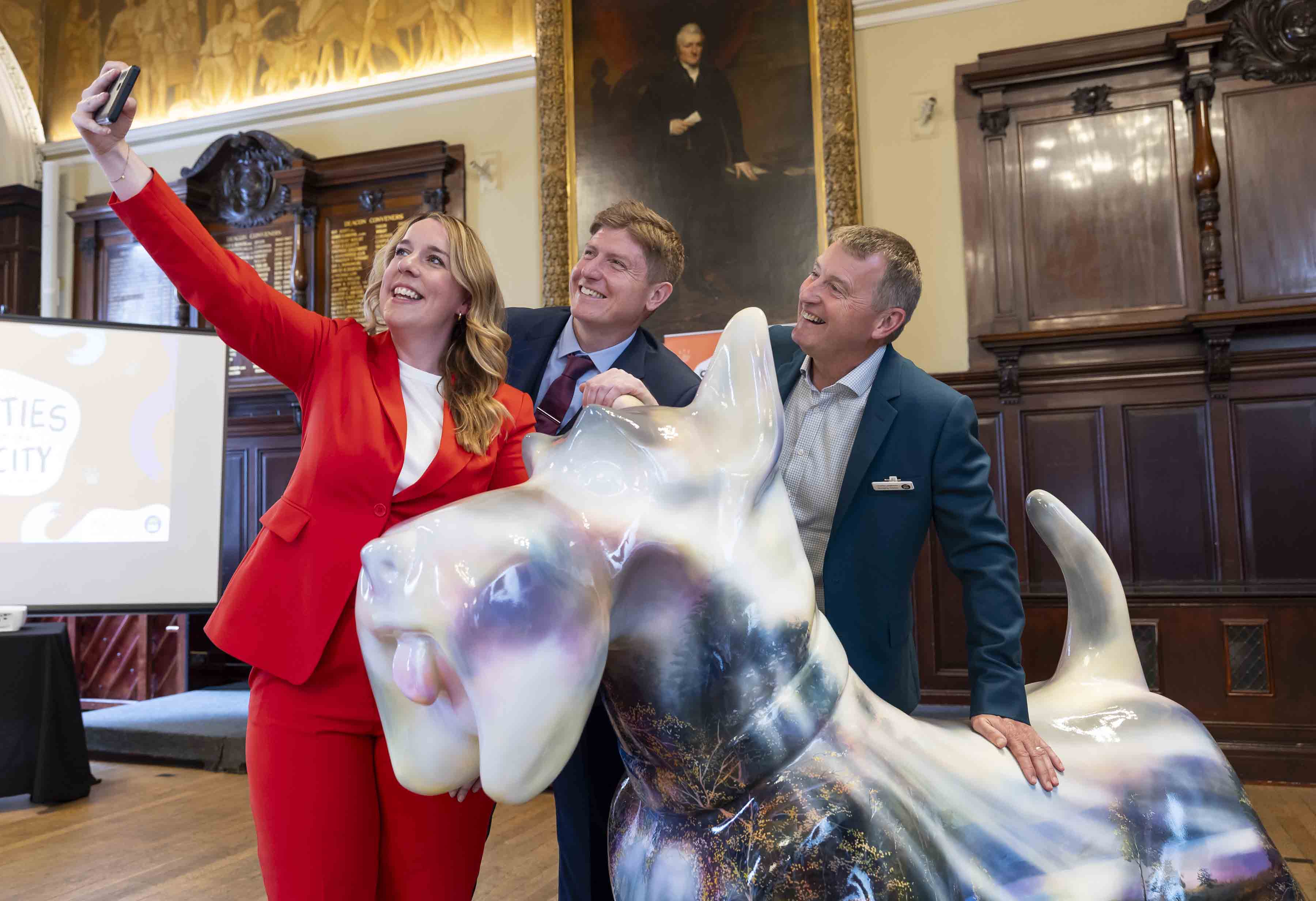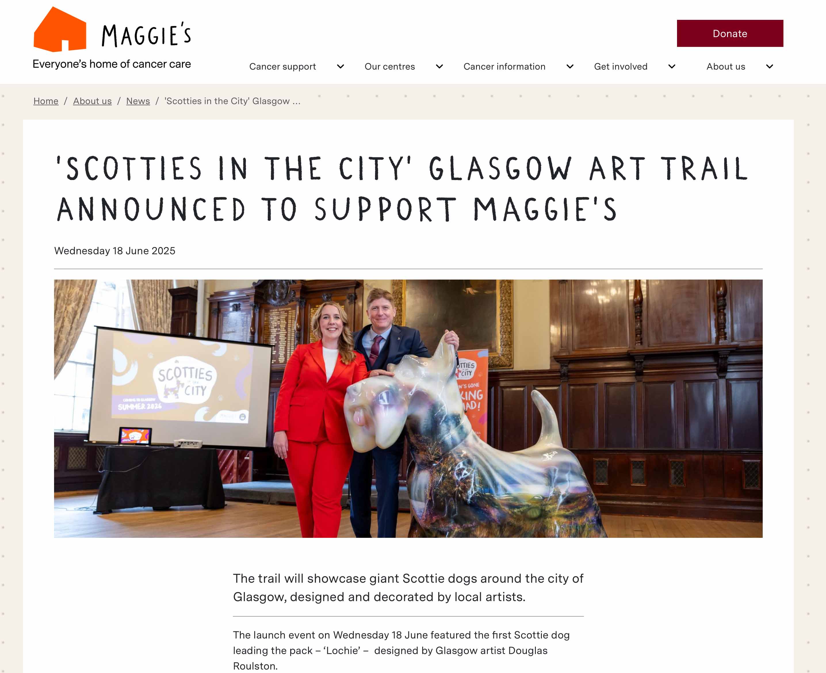 I was at the amazing Trades Hall in Glasgow for the launch of ‘Scotties in the City’ from Maggie’s Centres. It the unveiling of the plans for Glasgow’s most exciting new art trail and to photograph the giant-sized Scottie, ‘Lochie’ with Glasgow artist, Douglas Roulston. The vibrant trail will take place for eight weeks over the summer of 2026, when a pack of 50 beautifully designed, giant Scottie dogs will take over Glasgow and its suburbs. The colours and details in the sculpture are amazing and artist Douglas was pleasure to photograph with Hayley Smith, Project Manager for ‘Scotties in the City’ at Maggie’s. I loved this shot with Maggie’s Project Manager, Hayley with artist Douglas and Charlie Langhorne, MD and Co founder of Wild in Art. There was a real feel good mood at the event. Who doesn’t like s Scottie Dog?