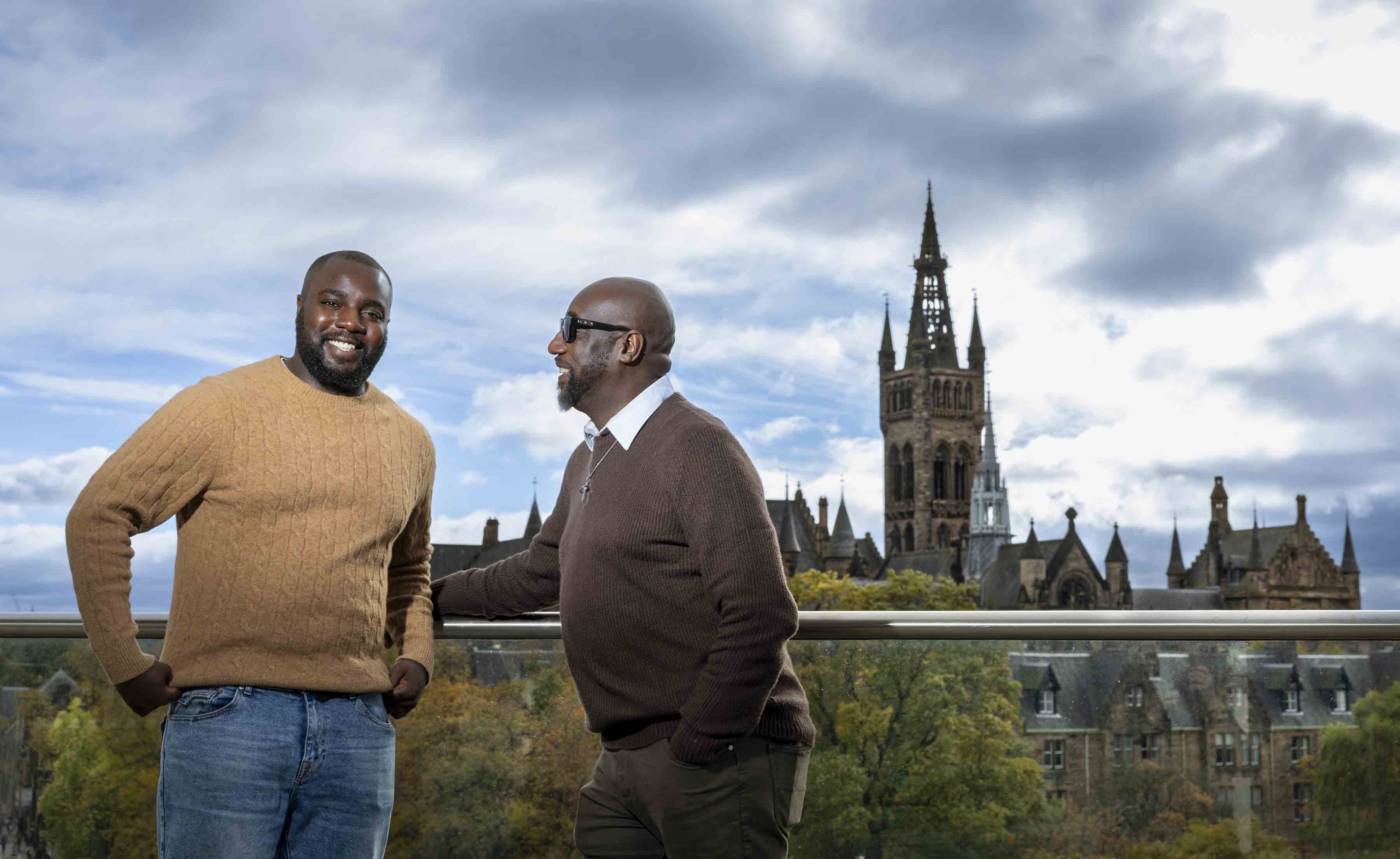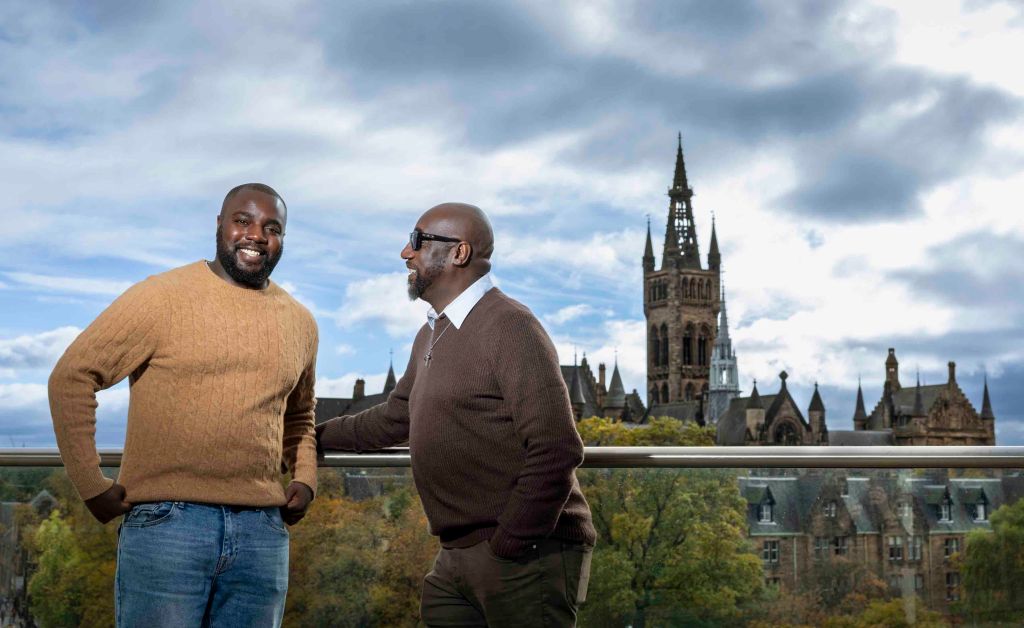 I met Montel Gordon, of the PhD Scholarship programme with his father, Paul on the balcony of the James McCune Smith building on campus at The University of Glasgow. The father and son students are hoping to build a legacy of black scholarship and storytelling. They are working in The James McCune Smith PhD Scholarship programme at the University as it continues to shape student’s futures and now families. Montel, is one of the programme’s inaugural 2022 scholars joined by his father, Paul, in a family journey of academic exploration. He had his dad were amazing to speak to, so interesting. They enjoyed the trip to the top of one of the universities newest buildings too.