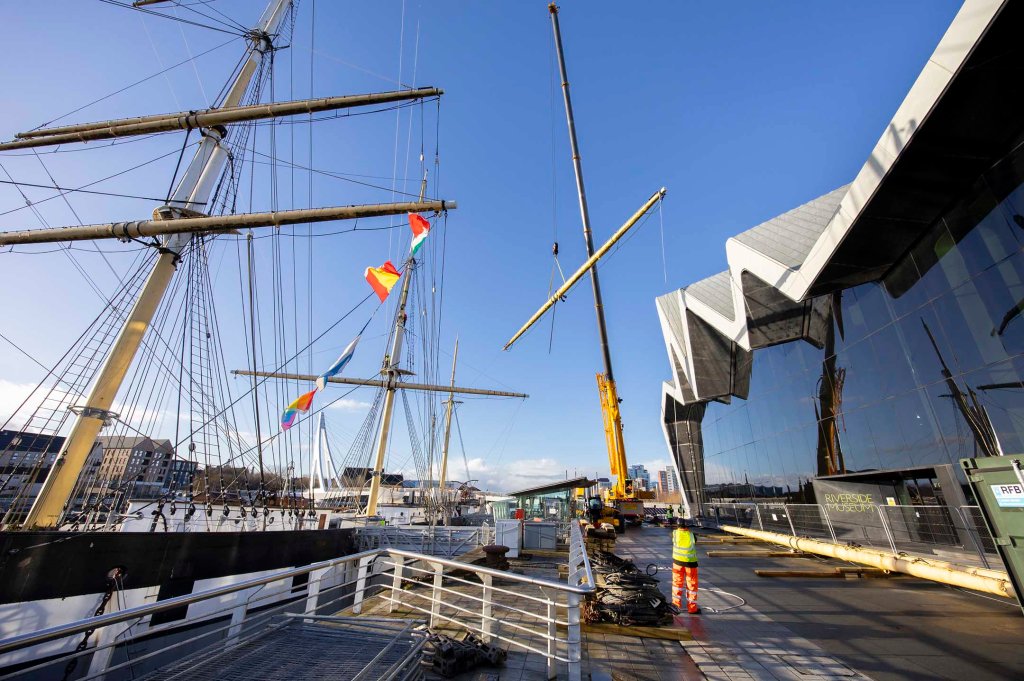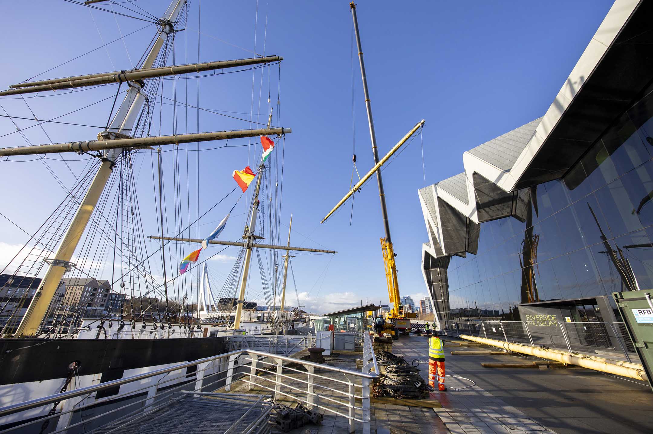 I had a super week with the Tall Ship Glenlee this month. Two of the ship’s masts were being removed for the first time in 30 years, for essential conservation work. Two of the three masts travelled south of the border bound for a specialist workshop of TS Rigging who have years of experience working with historic vessels such as RRS Discovery, HMS Gannet and the Cutty Sark, at Greenwich in London. They will give a detailed analysis of the strength and condition of the metal. It was a massive operation with huge cranes. I was mostly stood on the new Govan bridge watching the progress. It made for amazing photographs of the ship with the riggers working up in the masts. I was still cold with all my layers of clothing on, imagine the thought of doing that a couple of hundred years ago.