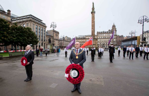 It was so good to see something happening in George Square after the long time in lockdown. Thirty City of Glasgow Merchant Navy cadets with Principle Paul Little and Glasgow Lord Provost Philip Braat attended the annual wreath laying ceremony. This was the first time the students from the college had formally gathered since the lockdown back in March.