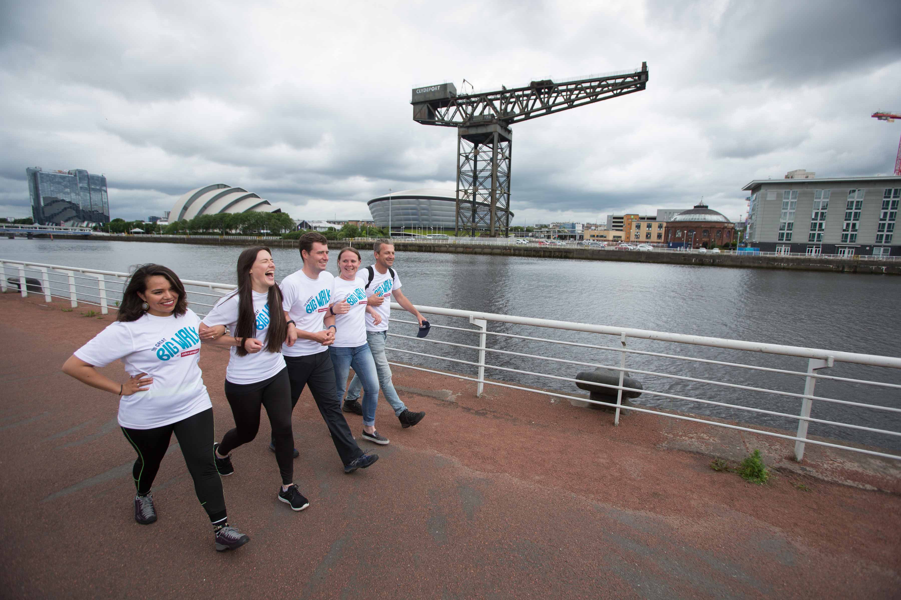 This month has not been the best for photography outside. Its been a record month for rainfall and with all the storms we have had sometimes you just have to keep your fingers crossed and watch the weather web pages to see the best times to arrange a photo session. I was working with a group of five lovely individuals from the quantity surveying and commercial management consultancy Soben. We had been checking the weather app to see the best time and our window of opportunity was right in the middle of the 90% chance of rain times. As I waited in a cafe beside the River Clyde with the wind and the rain battering down I was filled with dread. Amazingly when they arrived they brought the sunshine. The weather app had got the times slightly out. We had some great sunshine although there was a bitterly cold wind blowing up the river. They did really well with just suits and jackets as I was freezing in my two fleeces, jacket and hat.